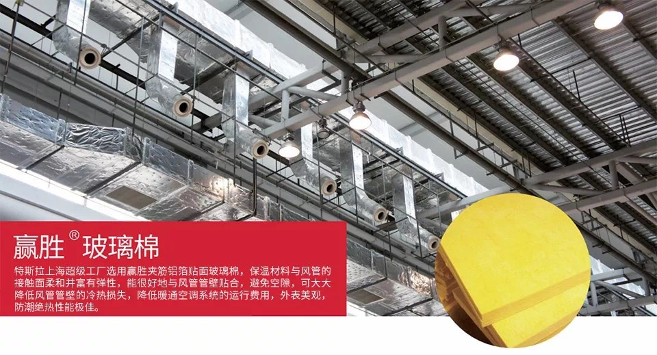 此次Tesla上海超級工廠風管采用贏勝玻璃棉產(chǎn)品,無論是現(xiàn)場安裝效果,還是產(chǎn)品各項性能,都獲得業(yè)主及安裝公司的一致好評和贊賞!